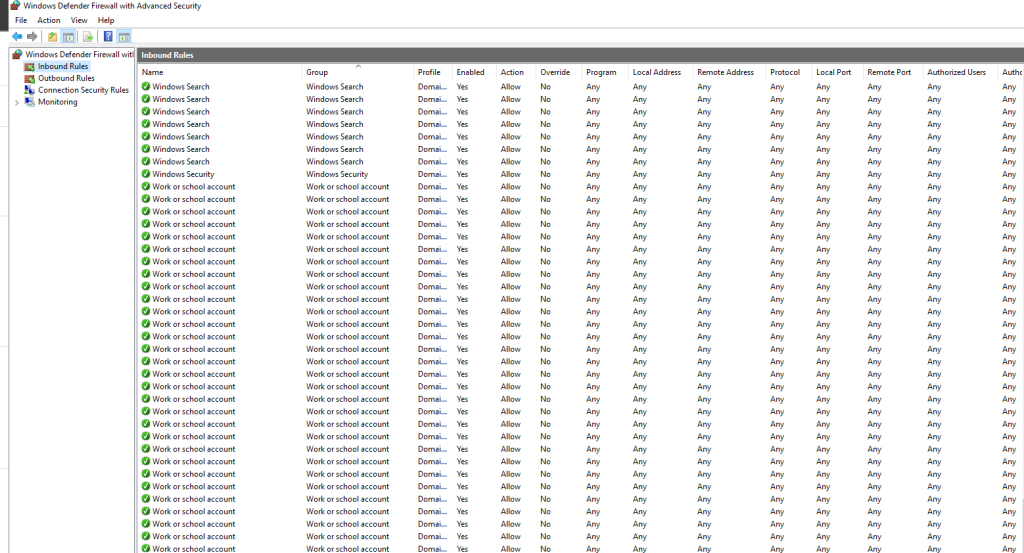 Oluşan kurallar silinmediği için bir süre sonra sistem üzerinde Performans sorunları ortaya çıkaracaktır. Özellikle RDP sırasında Görev Çubuğu, siyah ekran gibi sorunlar ile karşılaşabilirsiniz. Inbound ve Outbound Rule aşağıdaki gibi gözükmektedir.