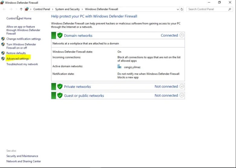 Erişim izni verdikten sonra, Windows Defender Güvenlik Duvarı üzerinden gerekli ayarları yapmaya devam ediyorum. Güvenlik duvarının gelişmiş ayarlarını açarak, “Gelen Kurallar” bölümünde “Routing and Remote Access” ile ilgili kuralları (GRE-In, L2TP-In, PPTP-In, SSTP-In) etkinleştiriyorum.