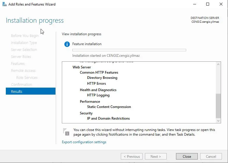 Kurulum tamamlandığında, sunucunuzu yeniden başlatmanız istenecek ve sunucunuzu yeniden başlatınız.
