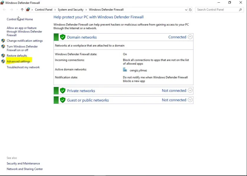 Erişim izni verdikten sonra, Windows Defender Güvenlik Duvarı üzerinden gerekli ayarları yapmaya devam ediyorum. Güvenlik duvarının gelişmiş ayarlarını açarak, “Gelen Kurallar” bölümünde “Routing and Remote Access” ile ilgili kuralları (GRE-In, L2TP-In, PPTP-In, SSTP-In)etkinleştiriyorum.