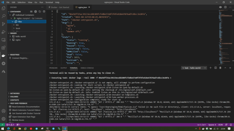 VS Code Container Sekmesi: Docker image’ınızın çalıştığını ve container’ın durumunu VS Code üzerinden Docker extension‘ını kullanarak görebilirsiniz.